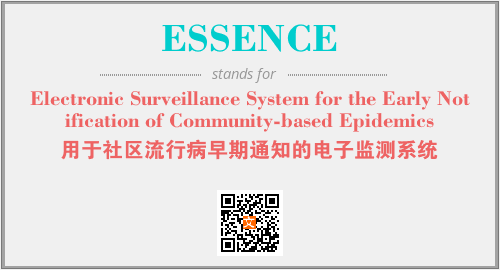 上述内容是“Electronic Surveillance System for the Early Notification of Community-based Epidemics”作为“ESSENCE”的缩写,解释为“用于社区流行病早期通知的电子监测系统”时的信息,以及英文缩略词ESSENCE所代表的英文单词,其对应的中文拼音、详细解释以及在英文中的流行度和相关分类、应用领域及应用示例等。