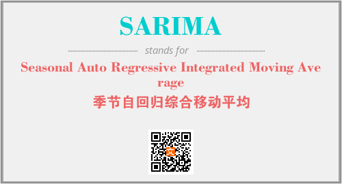 英文缩略词“SARIMA”经常作为“Seasonal Auto Regressive Integrated Moving Average”的英文缩写来使用,中文表示:“季节自回归综合移动平均”。本文将详细介绍英文缩写词SARIMA所代表英文单词,其对应的中文拼音、详细解释以及在英语中的流行度。此外,还有关于缩略词SARIMA的分类、应用领域及相关应用示例等。