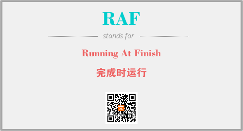 上述内容是“Running At Finish”作为“RAF”的缩写,解释为“完成时运行”时的信息,以及英文缩略词RAF所代表的英文单词,其对应的中文拼音、详细解释以及在英文中的流行度和相关分类、应用领域及应用示例等。