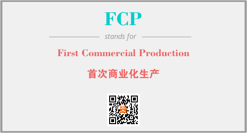 上述内容是“First Commercial Production”作为“FCP”的缩写,解释为“首次商业化生产”时的信息,以及英文缩略词FCP所代表的英文单词,其对应的中文拼音、详细解释以及在英文中的流行度和相关分类、应用领域及应用示例等。