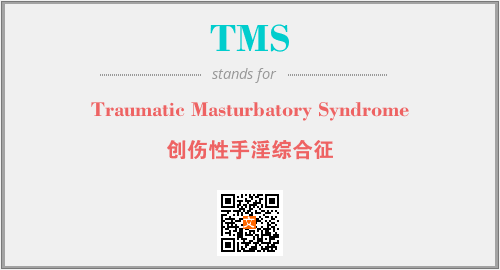 英文缩略词“TMS”经常作为“Traumatic Masturbatory Syndrome”的英文缩写来使用,中文表示:“创伤性手淫综合征”。本文将详细介绍英文缩写词TMS所代表英文单词,其对应的中文拼音、详细解释以及在英语中的流行度。此外,还有关于缩略词TMS的分类、应用领域及相关应用示例等。