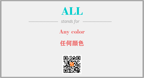 上述内容是“Any color”作为“ALL”的缩写,解释为“任何颜色”时的信息,以及英文缩略词ALL所代表的英文单词,其对应的中文拼音、详细解释以及在英文中的流行度和相关分类、应用领域及应用示例等。