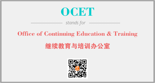 以上为Office of Continuing Education & Training英文缩略词OCET的中文解释,以及该英文缩写在英语的流行度、分类和应用领域方面的信息。