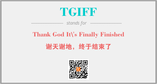 以上为Thank God It\'s Finally Finished英文缩略词TGIFF的中文解释,以及该英文缩写在英语的流行度、分类和应用领域方面的信息。