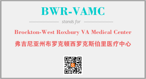 以上为Brockton-West Roxbury VA Medical Center英文缩略词BWR-VAMC的中文解释,以及该英文缩写在英语的流行度、分类和应用领域方面的信息。
