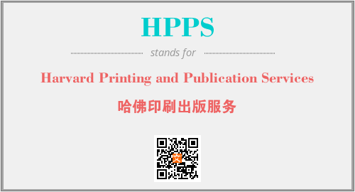 上述内容是“Harvard Printing and Publication Services”作为“HPPS”的缩写,解释为“哈佛印刷出版服务”时的信息,以及英文缩略词HPPS所代表的英文单词,其对应的中文拼音、详细解释以及在英文中的流行度和相关分类、应用领域及应用示例等。
