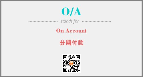 英文缩略词“O/A”经常作为“On Account”的英文缩写来使用,中文表示:“分期付款”。本文将详细介绍英文缩写词O/A所代表英文单词,其对应的中文拼音、详细解释以及在英语中的流行度。此外,还有关于缩略词O/A的分类、应用领域及相关应用示例等。