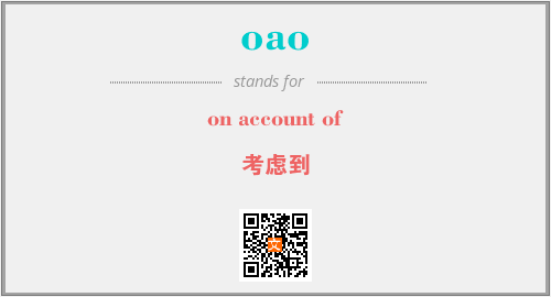英文缩略词“oao”经常作为“on account of”的英文缩写来使用,中文表示:“考虑到”。本文将详细介绍英文缩写词oao所代表英文单词,其对应的中文拼音、详细解释以及在英语中的流行度。此外,还有关于缩略词oao的分类、应用领域及相关应用示例等。