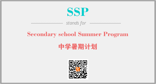英文缩略词“SSP”经常作为“Secondary school Summer Program”的英文缩写来使用,中文表示:“中学暑期计划”。本文将详细介绍英文缩写词SSP所代表英文单词,其对应的中文拼音、详细解释以及在英语中的流行度。此外,还有关于缩略词SSP的分类、应用领域及相关应用示例等。