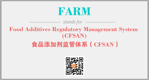 上述内容是“Food Additives Regulatory Management System (CFSAN)”作为“FARM”的缩写,解释为“食品添加剂监管体系(CFSAN)”时的信息,以及英文缩略词FARM所代表的英文单词,其对应的中文拼音、详细解释以及在英文中的流行度和相关分类、应用领域及应用示例等。