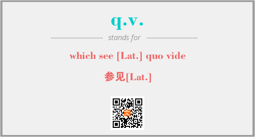 上述内容是“which see [Lat.] quo vide”作为“q.v.”的缩写,解释为“参见[Lat.]”时的信息,以及英文缩略词q.v.所代表的英文单词,其对应的中文拼音、详细解释以及在英文中的流行度和相关分类、应用领域及应用示例等。