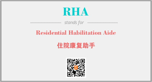 英文缩略词“RHA”经常作为“Residential Habilitation Aide”的英文缩写来使用,中文表示:“住院康复助手”。本文将详细介绍英文缩写词RHA所代表英文单词,其对应的中文拼音、详细解释以及在英语中的流行度。此外,还有关于缩略词RHA的分类、应用领域及相关应用示例等。
