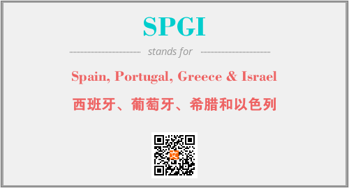 英文缩略词“SPGI”经常作为“Spain, Portugal, Greece & Israel”的英文缩写来使用,中文表示:“西班牙、葡萄牙、希腊和以色列”。本文将详细介绍英文缩写词SPGI所代表英文单词,其对应的中文拼音、详细解释以及在英语中的流行度。此外,还有关于缩略词SPGI的分类、应用领域及相关应用示例等。