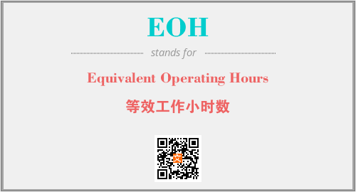 英文缩略词“EOH”经常作为“Equivalent Operating Hours”的英文缩写来使用,中文表示:“等效工作小时数”。本文将详细介绍英文缩写词EOH所代表英文单词,其对应的中文拼音、详细解释以及在英语中的流行度。此外,还有关于缩略词EOH的分类、应用领域及相关应用示例等。