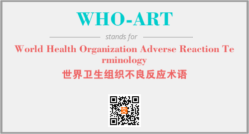 英文缩略词“WHO-ART”经常作为“World Health Organization Adverse Reaction Terminology”的英文缩写来使用,中文表示:“世界卫生组织不良反应术语”。本文将详细介绍英文缩写词WHO-ART所代表英文单词,其对应的中文拼音、详细解释以及在英语中的流行度。此外,还有关于缩略词WHO-ART的分类、应用领域及相关应用示例等。