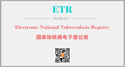 英文缩略词“ETR”经常作为“Electronic National Tuberculosis Registry”的英文缩写来使用,中文表示:“国家结核病电子登记册”。本文将详细介绍英文缩写词ETR所代表英文单词,其对应的中文拼音、详细解释以及在英语中的流行度。此外,还有关于缩略词ETR的分类、应用领域及相关应用示例等。