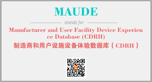 上述内容是“Manufacturer and User Facility Device Experience Database (CDRH)”作为“MAUDE”的缩写,解释为“制造商和用户设施设备体验数据库(CDRH)”时的信息,以及英文缩略词MAUDE所代表的英文单词,其对应的中文拼音、详细解释以及在英文中的流行度和相关分类、应用领域及应用示例等。