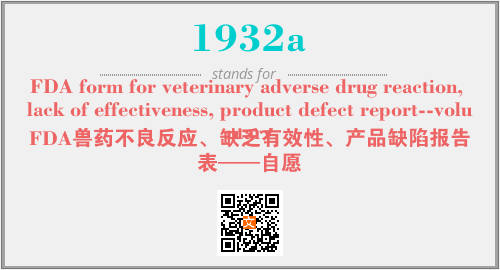 上述内容是“FDA form for veterinary adverse drug reaction, lack of effectiveness, product defect report--voluntary”作为“1932a”的缩写,解释为“FDA兽药不良反应、缺乏有效性、产品缺陷报告表——自愿”时的信息,以及英文缩略词1932a所代表的英文单词,其对应的中文拼音、详细解释以及在英文中的流行度和相关分类、应用领域及应用示例等。