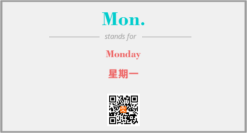 上述内容是“Monday”作为“Mon.”的缩写,解释为“星期一”时的信息,以及英文缩略词Mon.所代表的英文单词,其对应的中文拼音、详细解释以及在英文中的流行度和相关分类、应用领域及应用示例等。