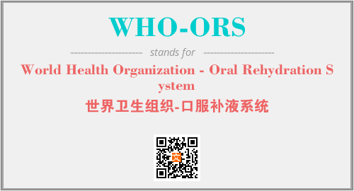 英文缩略词“WHO-ORS”经常作为“World Health Organization - Oral Rehydration System”的英文缩写来使用,中文表示:“世界卫生组织-口服补液系统”。本文将详细介绍英文缩写词WHO-ORS所代表英文单词,其对应的中文拼音、详细解释以及在英语中的流行度。此外,还有关于缩略词WHO-ORS的分类、应用领域及相关应用示例等。