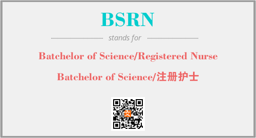 上述内容是“Batchelor of Science/Registered Nurse”作为“BSRN”的缩写,解释为“Batchelor of Science/注册护士”时的信息,以及英文缩略词BSRN所代表的英文单词,其对应的中文拼音、详细解释以及在英文中的流行度和相关分类、应用领域及应用示例等。