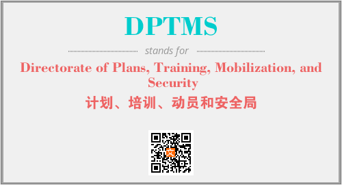 上述内容是“Directorate of Plans, Training, Mobilization, and Security”作为“DPTMS”的缩写,解释为“计划、培训、动员和安全局”时的信息,以及英文缩略词DPTMS所代表的英文单词,其对应的中文拼音、详细解释以及在英文中的流行度和相关分类、应用领域及应用示例等。