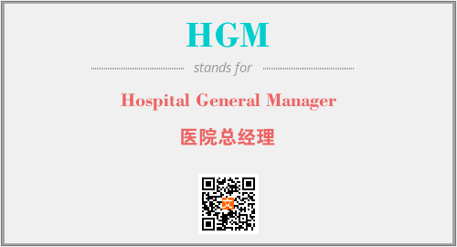 英文缩略词“HGM”经常作为“Hospital General Manager”的英文缩写来使用,中文表示:“医院总经理”。本文将详细介绍英文缩写词HGM所代表英文单词,其对应的中文拼音、详细解释以及在英语中的流行度。此外,还有关于缩略词HGM的分类、应用领域及相关应用示例等。