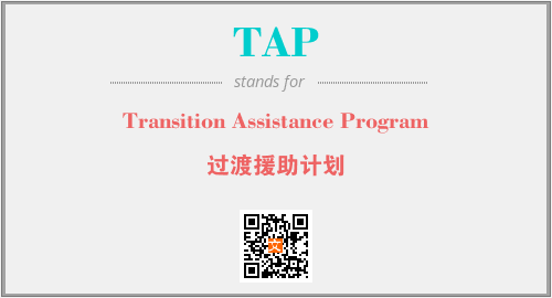 英文缩略词“TAP”经常作为“Transition Assistance Program”的英文缩写来使用,中文表示:“过渡援助计划”。本文将详细介绍英文缩写词TAP所代表英文单词,其对应的中文拼音、详细解释以及在英语中的流行度。此外,还有关于缩略词TAP的分类、应用领域及相关应用示例等。