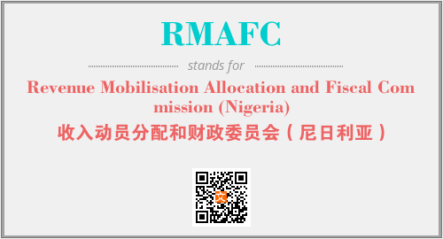上述内容是“Revenue Mobilisation Allocation and Fiscal Commission (Nigeria)”作为“RMAFC”的缩写,解释为“收入动员分配和财政委员会(尼日利亚)”时的信息,以及英文缩略词RMAFC所代表的英文单词,其对应的中文拼音、详细解释以及在英文中的流行度和相关分类、应用领域及应用示例等。
