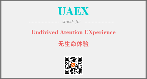 上述内容是“Undivived Atention EXperience”作为“UAEX”的缩写,解释为“无生命体验”时的信息,以及英文缩略词UAEX所代表的英文单词,其对应的中文拼音、详细解释以及在英文中的流行度和相关分类、应用领域及应用示例等。