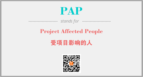 以上为Project Affected People英文缩略词PAP的中文解释,以及该英文缩写在英语的流行度、分类和应用领域方面的信息。