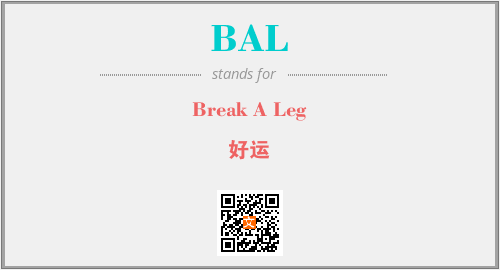 以上为Break A Leg英文缩略词BAL的中文解释,以及该英文缩写在英语的流行度、分类和应用领域方面的信息。