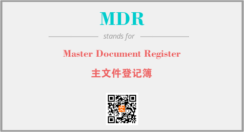 英文缩略词“MDR”经常作为“Master Document Register”的英文缩写来使用,中文表示:“主文件登记簿”。本文将详细介绍英文缩写词MDR所代表英文单词,其对应的中文拼音、详细解释以及在英语中的流行度。此外,还有关于缩略词MDR的分类、应用领域及相关应用示例等。
