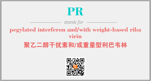 上述内容是“pegylated interferon and/with weight-based ribavirin”作为“PR”的缩写,解释为“聚乙二醇干扰素和/或重量型利巴韦林”时的信息,以及英文缩略词PR所代表的英文单词,其对应的中文拼音、详细解释以及在英文中的流行度和相关分类、应用领域及应用示例等。