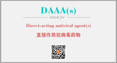 上述内容是“Direct-acting antiviral agent(s)”作为“DAAA(s)”的缩写,解释为“直接作用抗病毒药物”时的信息,以及英文缩略词DAAA(s)所代表的英文单词,其对应的中文拼音、详细解释以及在英文中的流行度和相关分类、应用领域及应用示例等。