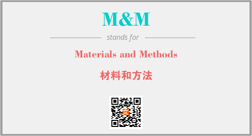 上述内容是“Materials and Methods”作为“M&M”的缩写,解释为“材料和方法”时的信息,以及英文缩略词M&M所代表的英文单词,其对应的中文拼音、详细解释以及在英文中的流行度和相关分类、应用领域及应用示例等。