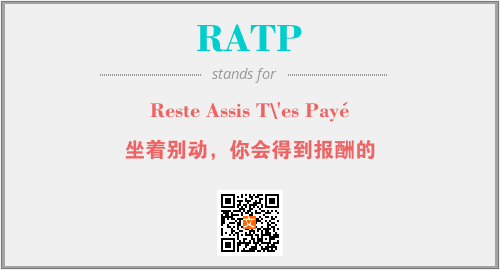 上述内容是“Reste Assis T\'es Payé”作为“RATP”的缩写,解释为“坐着别动,你会得到报酬的”时的信息,以及英文缩略词RATP所代表的英文单词,其对应的中文拼音、详细解释以及在英文中的流行度和相关分类、应用领域及应用示例等。