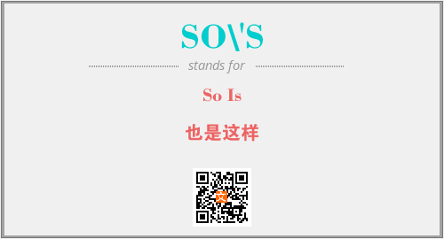 以上为So Is英文缩略词SO\'S的中文解释,以及该英文缩写在英语的流行度、分类和应用领域方面的信息。