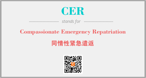 英文缩略词“CER”经常作为“Compassionate Emergency Repatriation”的英文缩写来使用,中文表示:“同情性紧急遣返”。本文将详细介绍英文缩写词CER所代表英文单词,其对应的中文拼音、详细解释以及在英语中的流行度。此外,还有关于缩略词CER的分类、应用领域及相关应用示例等。