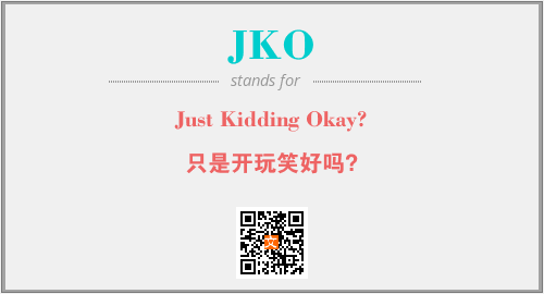 英文缩略词“JKO”经常作为“Just Kidding Okay?”的英文缩写来使用,中文表示:“只是开玩笑好吗?”。本文将详细介绍英文缩写词JKO所代表英文单词,其对应的中文拼音、详细解释以及在英语中的流行度。此外,还有关于缩略词JKO的分类、应用领域及相关应用示例等。