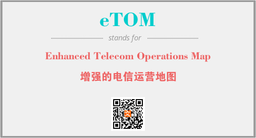英文缩略词“eTOM”经常作为“Enhanced Telecom Operations Map”的英文缩写来使用,中文表示:“增强的电信运营地图”。本文将详细介绍英文缩写词eTOM所代表英文单词,其对应的中文拼音、详细解释以及在英语中的流行度。此外,还有关于缩略词eTOM的分类、应用领域及相关应用示例等。