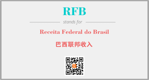 英文缩略词“RFB”经常作为“Receita Federal do Brasil”的英文缩写来使用,中文表示:“巴西联邦收入”。本文将详细介绍英文缩写词RFB所代表英文单词,其对应的中文拼音、详细解释以及在英语中的流行度。此外,还有关于缩略词RFB的分类、应用领域及相关应用示例等。