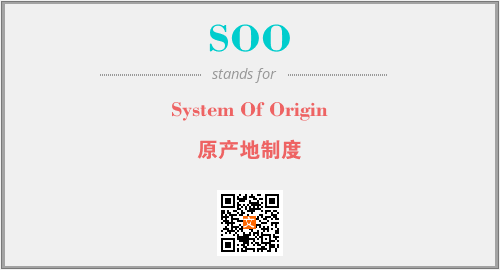 上述内容是“System Of Origin”作为“SOO”的缩写,解释为“原产地制度”时的信息,以及英文缩略词SOO所代表的英文单词,其对应的中文拼音、详细解释以及在英文中的流行度和相关分类、应用领域及应用示例等。