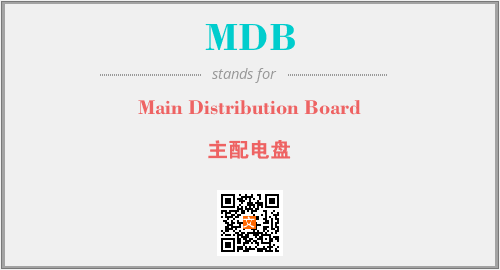 英文缩略词“MDB”经常作为“Main Distribution Board”的英文缩写来使用,中文表示:“主配电盘”。本文将详细介绍英文缩写词MDB所代表英文单词,其对应的中文拼音、详细解释以及在英语中的流行度。此外,还有关于缩略词MDB的分类、应用领域及相关应用示例等。