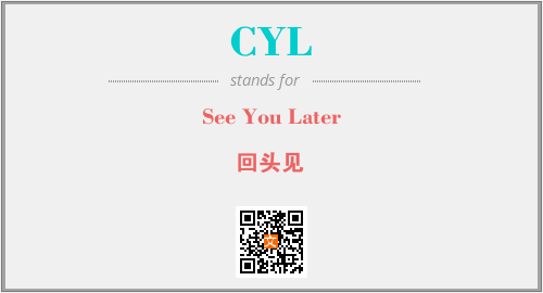 英文缩略词“CYL”经常作为“See You Later”的英文缩写来使用,中文表示:“回头见”。本文将详细介绍英文缩写词CYL所代表英文单词,其对应的中文拼音、详细解释以及在英语中的流行度。此外,还有关于缩略词CYL的分类、应用领域及相关应用示例等。
