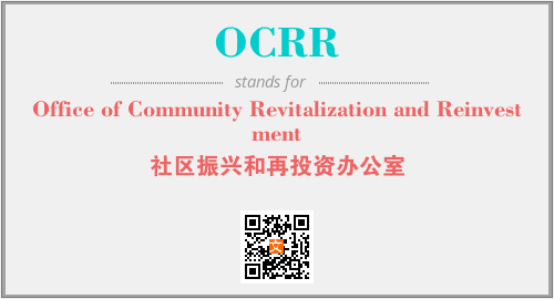 上述内容是“Office of Community Revitalization and Reinvestment”作为“OCRR”的缩写,解释为“社区振兴和再投资办公室”时的信息,以及英文缩略词OCRR所代表的英文单词,其对应的中文拼音、详细解释以及在英文中的流行度和相关分类、应用领域及应用示例等。