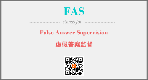 上述内容是“False Answer Supervision”作为“FAS”的缩写,解释为“虚假答案监督”时的信息,以及英文缩略词FAS所代表的英文单词,其对应的中文拼音、详细解释以及在英文中的流行度和相关分类、应用领域及应用示例等。