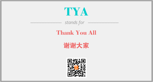 以上为Thank You All英文缩略词TYA的中文解释,以及该英文缩写在英语的流行度、分类和应用领域方面的信息。