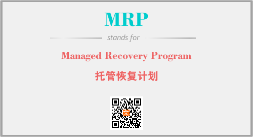 英文缩略词“MRP”经常作为“Managed Recovery Program”的英文缩写来使用,中文表示:“托管恢复计划”。本文将详细介绍英文缩写词MRP所代表英文单词,其对应的中文拼音、详细解释以及在英语中的流行度。此外,还有关于缩略词MRP的分类、应用领域及相关应用示例等。