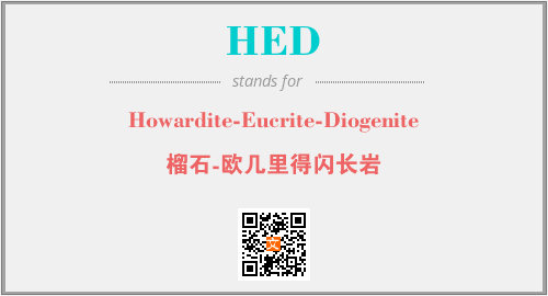 上述内容是“Howardite-Eucrite-Diogenite”作为“HED”的缩写,解释为“榴石-欧几里得闪长岩”时的信息,以及英文缩略词HED所代表的英文单词,其对应的中文拼音、详细解释以及在英文中的流行度和相关分类、应用领域及应用示例等。